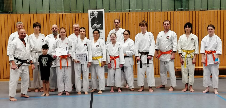 Mike eröffnete in diesem Jahr das sportliche Geschehen unseres Dojos. Er nahm vom 2. bis 5. Januar 2025 an einem Trainerseminar in Kamenz teil. Geleitet wurde der Lehrgang vom finnischen Meister Risto Kiiskilä (6. Dan Shotokan). Schwerpunkte waren das Training der Kata (Form) und Elemente des Kumite (Partnerkampf). Am 11. Januar 2025 folgten Max Wilfarth und Bernd Sonnenberg. Der Karateverein TKV Neuruppin lud zum Lehrgang mit Sensei Christine Münnich (6. Dan Shotokan, AJKA-Ausbilderin) ein. Auf ihrem Programm stand das Üben von Jiu-ippon Kumite (halbfreier Partnerkampf) und der Kata (Form) Enpi („Flug der Schwalbe“)